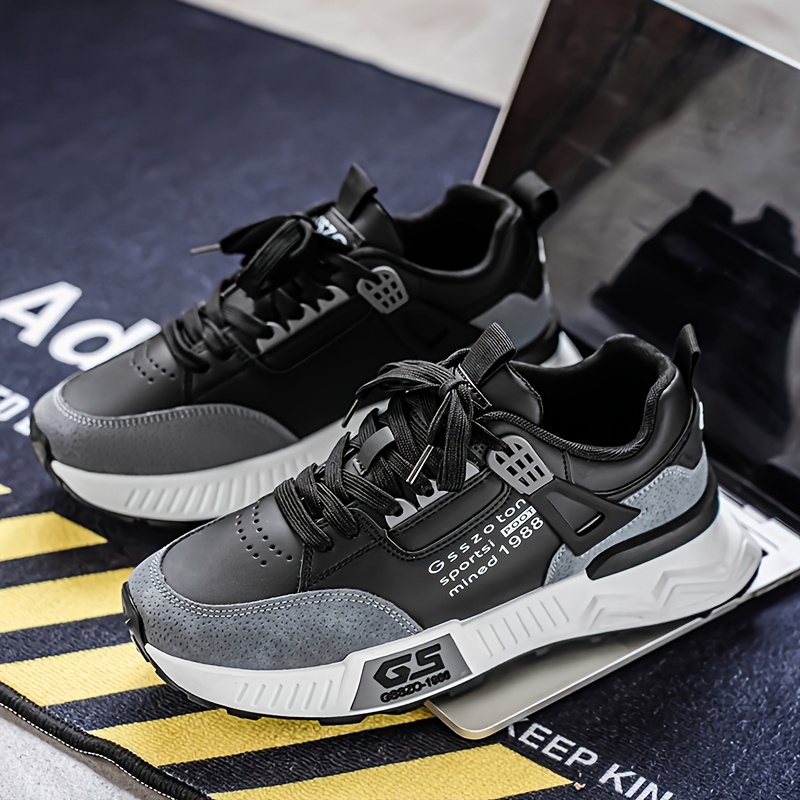 Men's Non-Slip Sneakers - Slip-Resistant Cushioned Platform, All-Terrain Traction for Gym, Running, Casual - Low-Top Sneakers Black/Gray/ - PU Upper & PVC Sole - Lace-Up Athletic Footwear, Outdoor Activities, Streetwear Style, Breathable Lining, Versatile Kicks, Fitness Enthusiasts