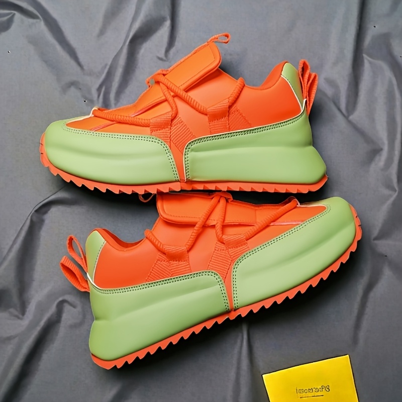 Men's Plus Size Breathable Mesh Sneakers - Lime Green & Orange Accents, Low-Top Lace-Up Casual Streetwear Shoes with Durable PVC Sole for All-Season Outdoor & Daily Wear, Fabric Interior Lining