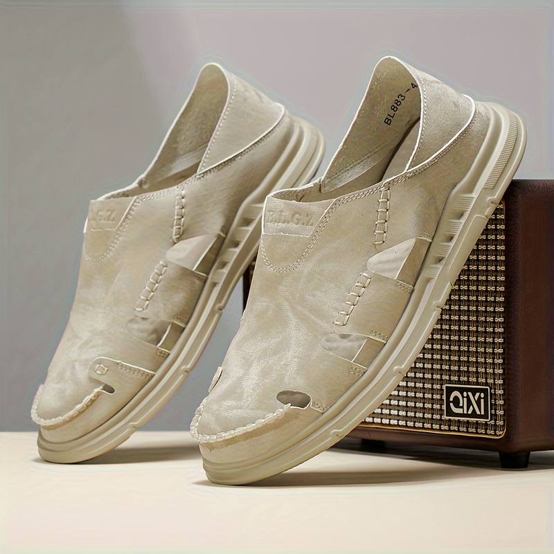 Men's Retro Slip-Resistant Arch Support Mules - Breathable Upper & Cushioned Insole, Beige/White Round-Toe Sandals with Arch Support for All-Season Casual, Beach & Casual Attire - Comfortable Slip-On Shoes for Men, Sports Sandals for Men, Orthopedic Sandals for Men