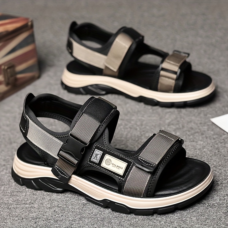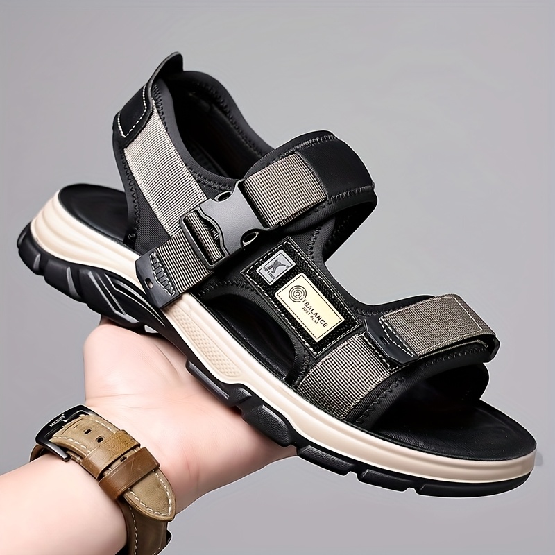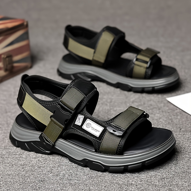 Men'S Lightweight Non-Slip Casual Sandals - Breathable Microfiber with Adjustable Straps, Black & Green Two-Way Slides for Beach, Outdoor, and Everyday Wear, Strappy Sandals