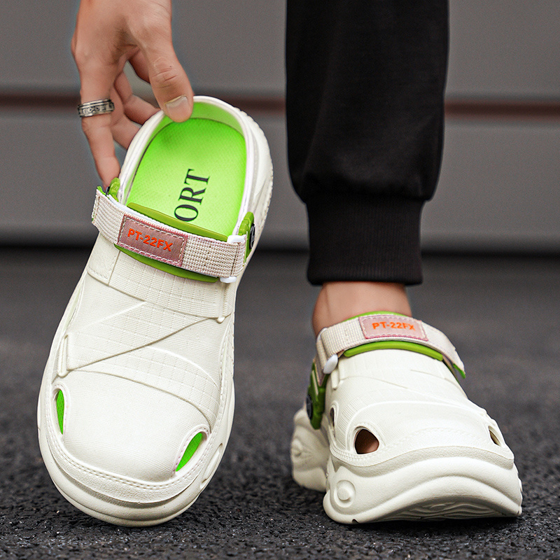 Men's Summer Slip-On Sandals with EVA Sole - Comfortable Beach Shoes for Driving & Casual Wear, White with Green Accents, Breathable Design, Easy On/Off, Durable & Stylish, Summer Sandals