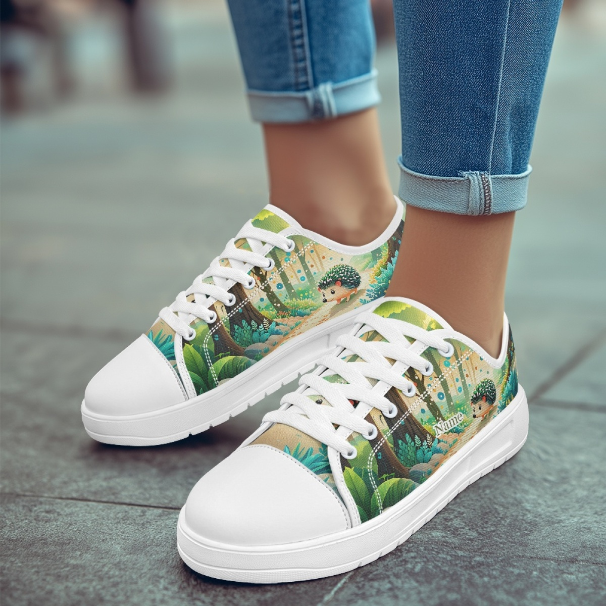 Unisex Hedgehog Print Low-Top Canvas Sneakers - Breathable Comfortable Walking Shoes with EVA Sole, Machine Washable for Hiking, Travel & Daily Wear