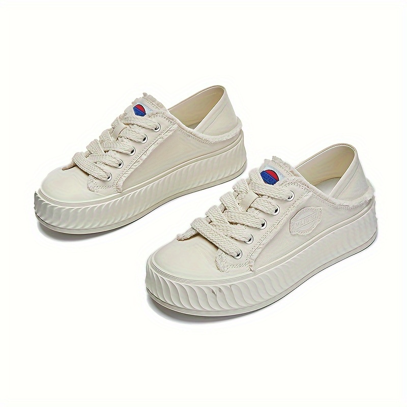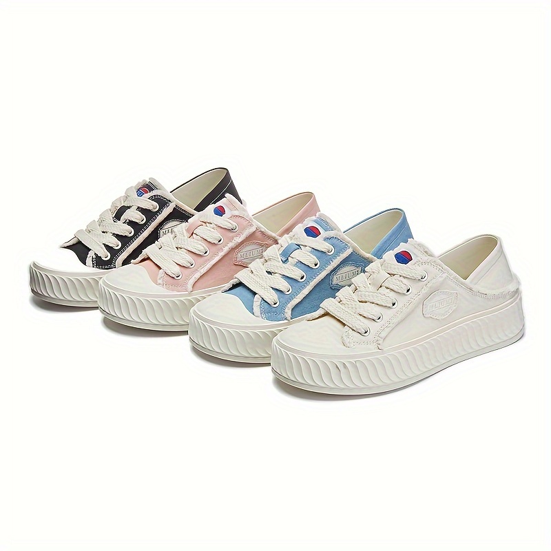 Casual Style Women's Canvas Sneakers - Convertible Slip-On or Lace-Up, All-Season Round Toe Flats with Rubber Sole, Comfortable Fabric Insole, Solid Color Fashionable Cookie Shoes - Hand Washable